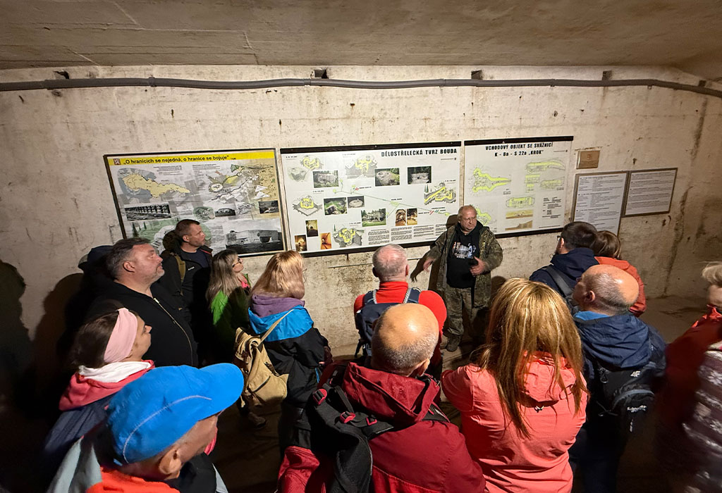 Program wycieczki obejmuje zwiedzanie części naziemnych i podziemnych grupy warownej Bouda (bilet do Twierdzy Bouda wliczony jest już w cenę wycieczki). Trasa wycieczki obejmuje m.in.: przejście wzdłuż tzw. Betonowej Granicy, zwiedzanie lekkich schronów piechoty tzw. rzopików i ciężkich schronów piechoty. Zwiedzanie podziemnego komponentu grupy warownej Bouda: wejście przez schron wejściowy K-S 22a, przejście podziemną trasą, komory minowe, maszynownia, magazyny amunicji, wystawy sprzętu wojskowego, przejście główną podziemną galerią, zwiedzanie koszar załogi, przejście pod schron K-S 22, wejście na górne piętro schronu, gdzie miała być zamontowana wysuwana wieża artyleryjska (do pokonania około 100 schodów do góry).